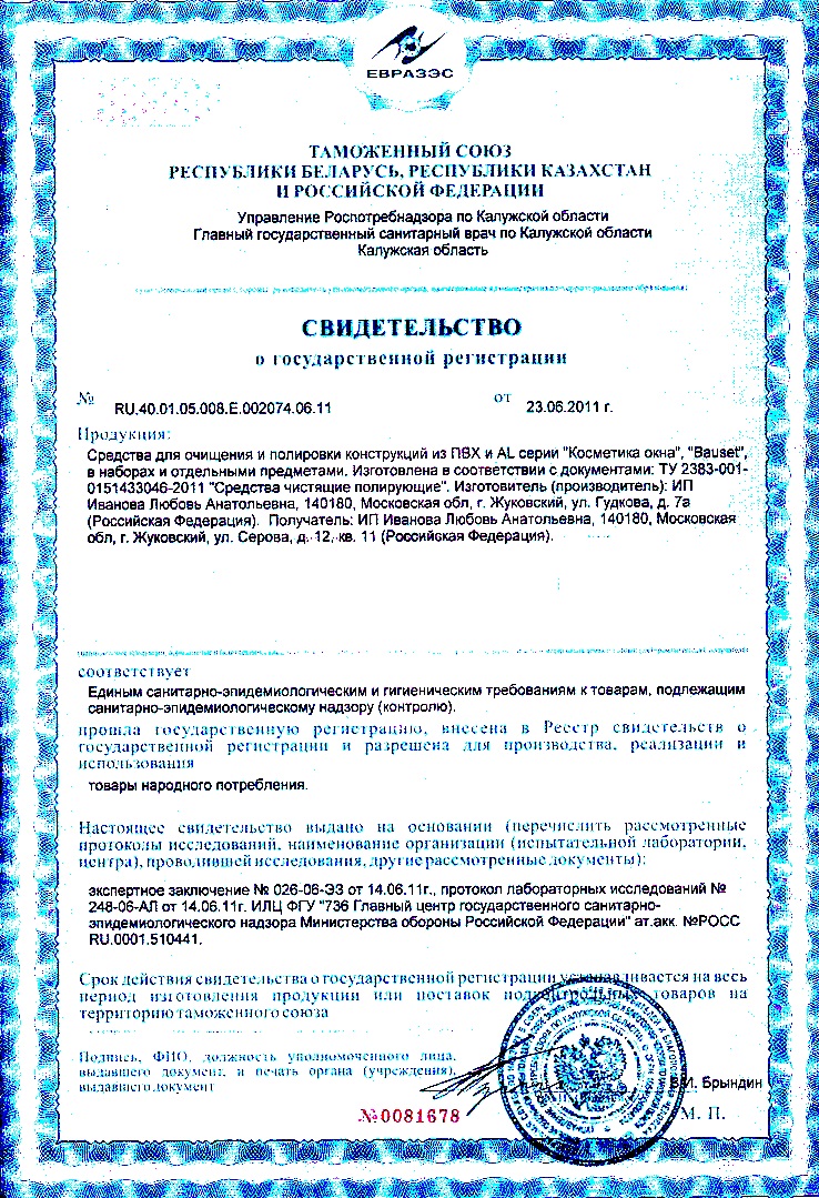 Косметика окна, Россия (т. м. Косметика окна; Bauset)